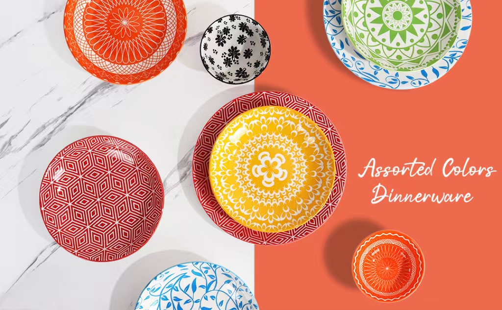 • HAND PAINTED CERAMIC DINNERWARE - Each ceramic pasta bowl has a unique, handmade-inspired design. These vibrant color plates bowl add a stylistic touch and brighten up your life. These large pasta bowls were made of high grade durable porcelain, which is free of lead and cadmium. Your family can use them with microwave, dishwasher, freezer and oven.