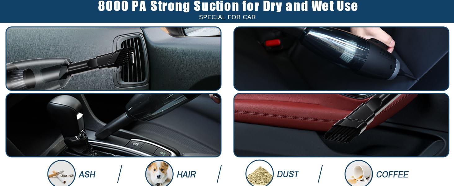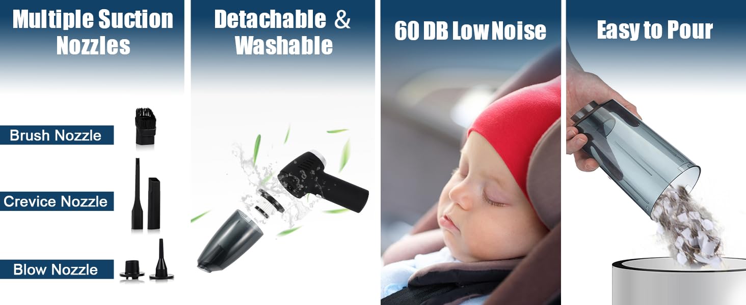 • 【Transparent Dust Cup】The dust cup of this car vacuum cleaner is detachable and transparent, which is convenient for you to monitor at any time and reduces the trouble of use. We also provide you with an extra spare filter for easy replacement. The dust cup is washable, so that you can thoroughly clean the dirt in the dust cup after using the vacuum cleaner.